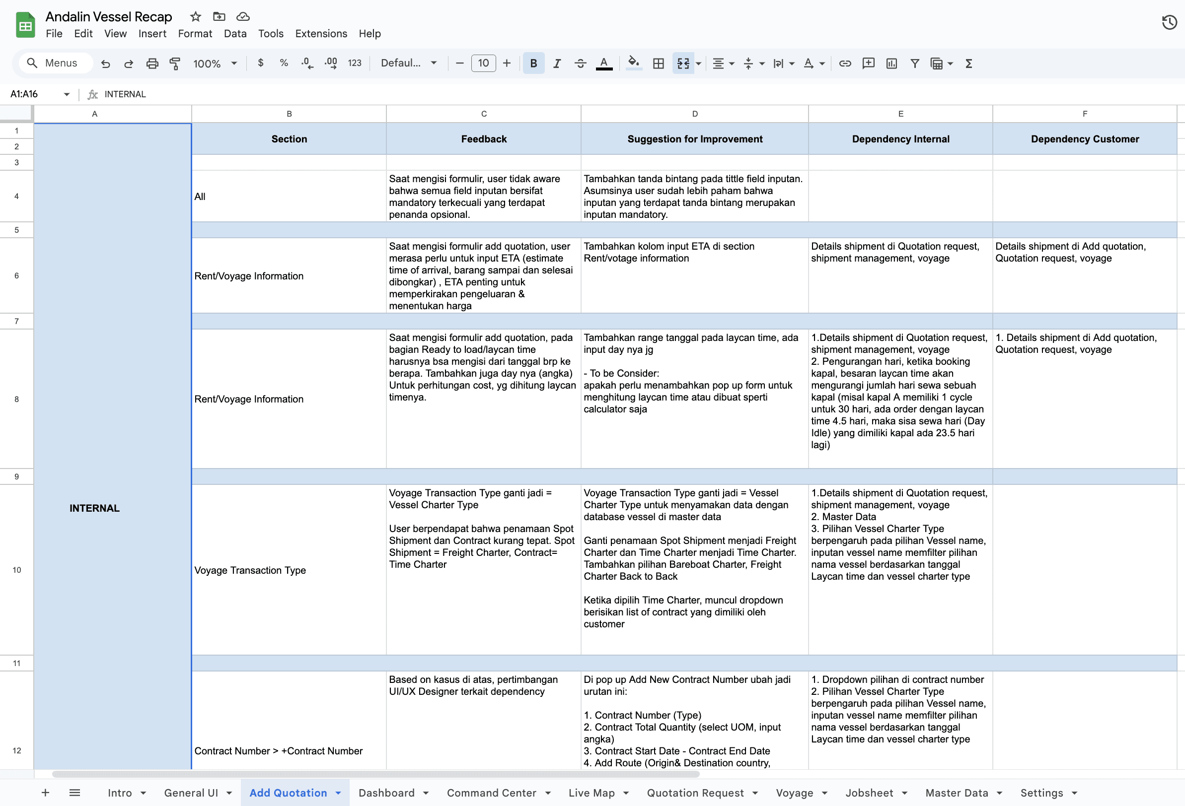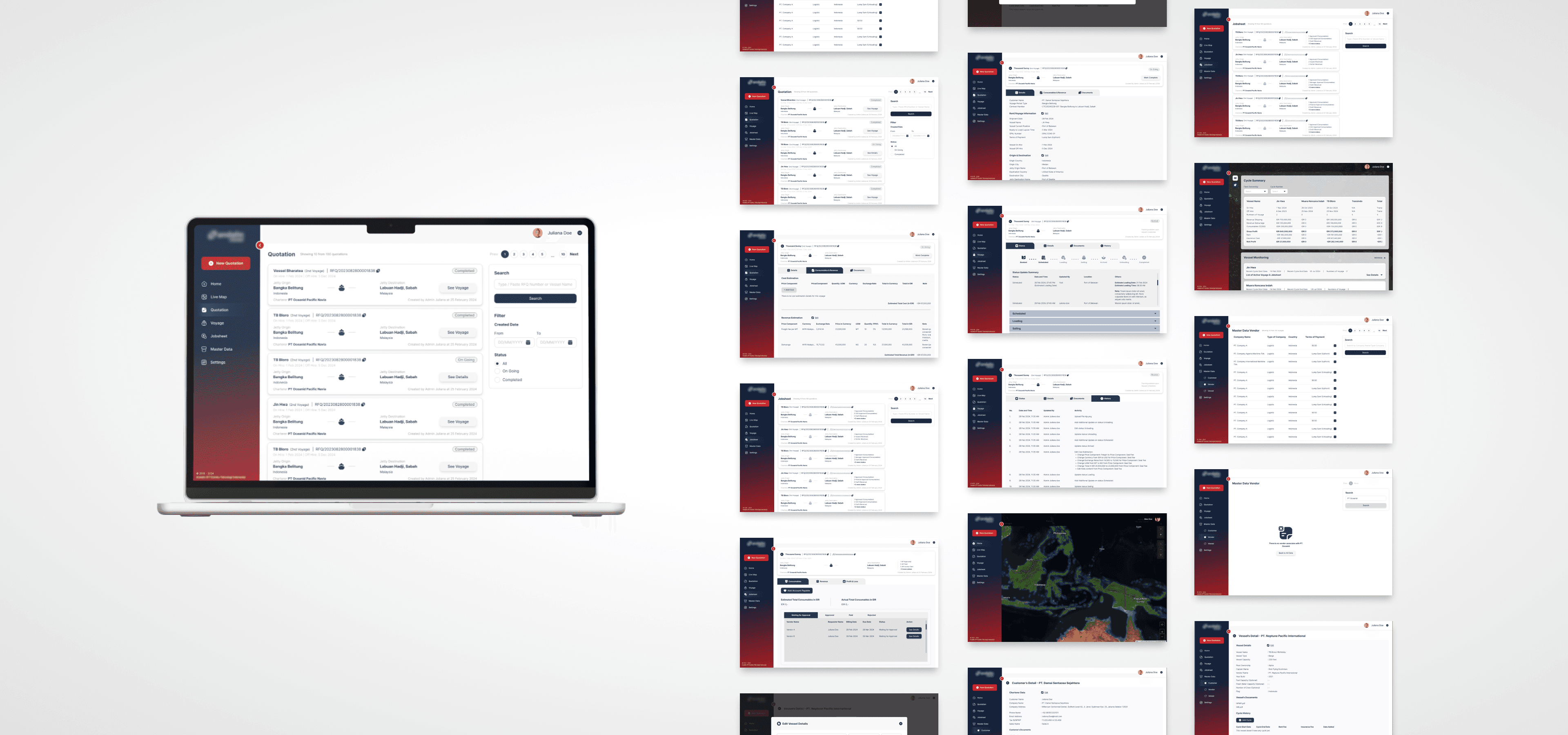 The vessel charter and freight forwarding businesses differ significantly in various aspects, including coordination workflows, shipping handling, pricing components, cost and profit calculations, and invoicing processes. To navigate the complexities of the vessel charter business, the company adopted a learn-by-doing approach, which included hiring new team members with relevant experience in the field. However, the addition of new stakeholders brought fresh perspectives, which often differed significantly from the initial ideas previously implemented. These dynamics posed challenges in designing the platform's information architecture, crafting an effective user journey, and developing feature designs.
